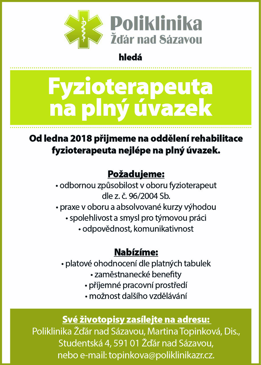 Nacházíte se zde: Úvod > Absolventi > Nabídka pracovních míst > Všechny nabídky - interní > Fyzioterapeut, poliklinika Źďár nad Sázavou.jpg