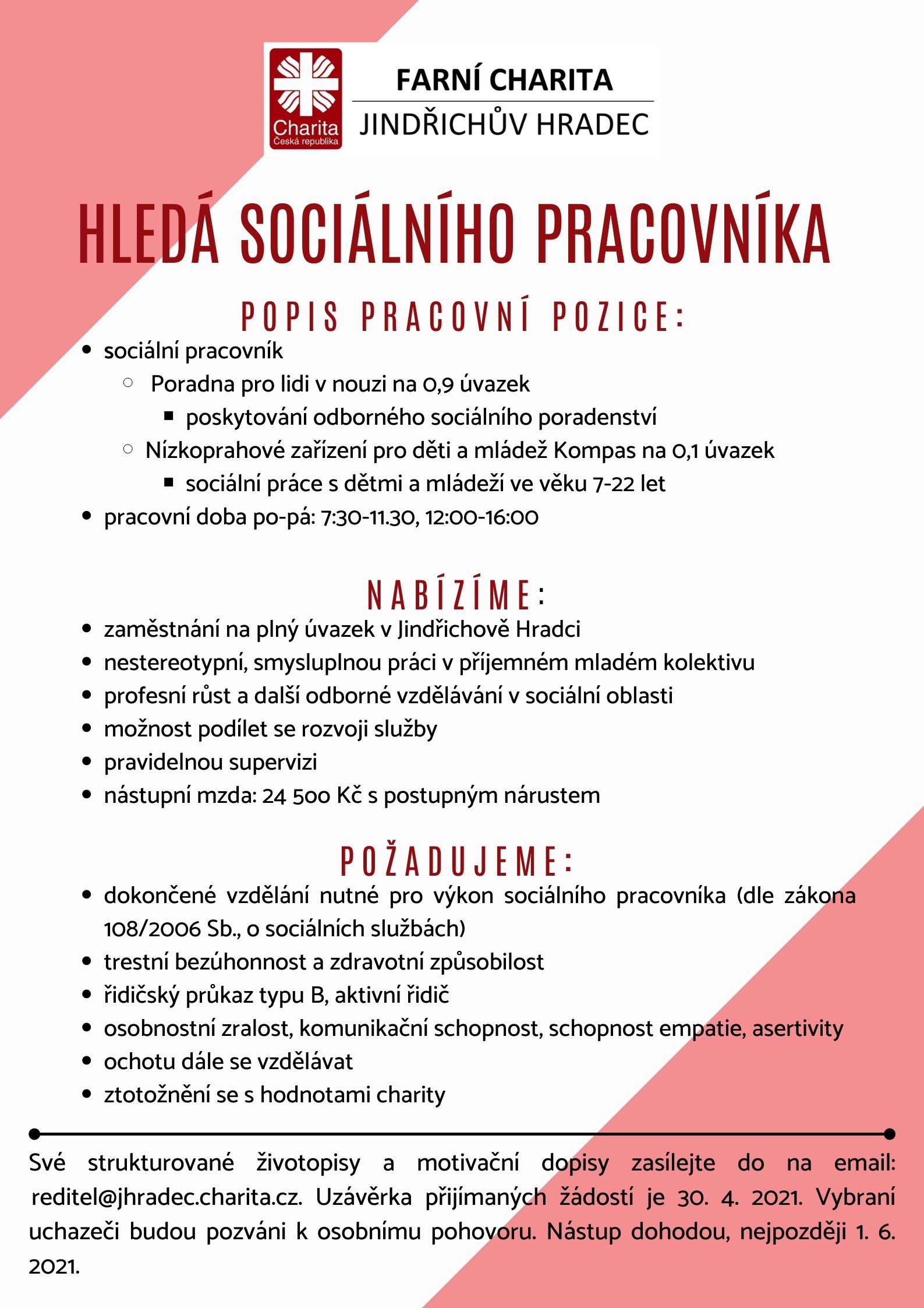 Sociální pracovník - Farní charita Jindřichův Hradec