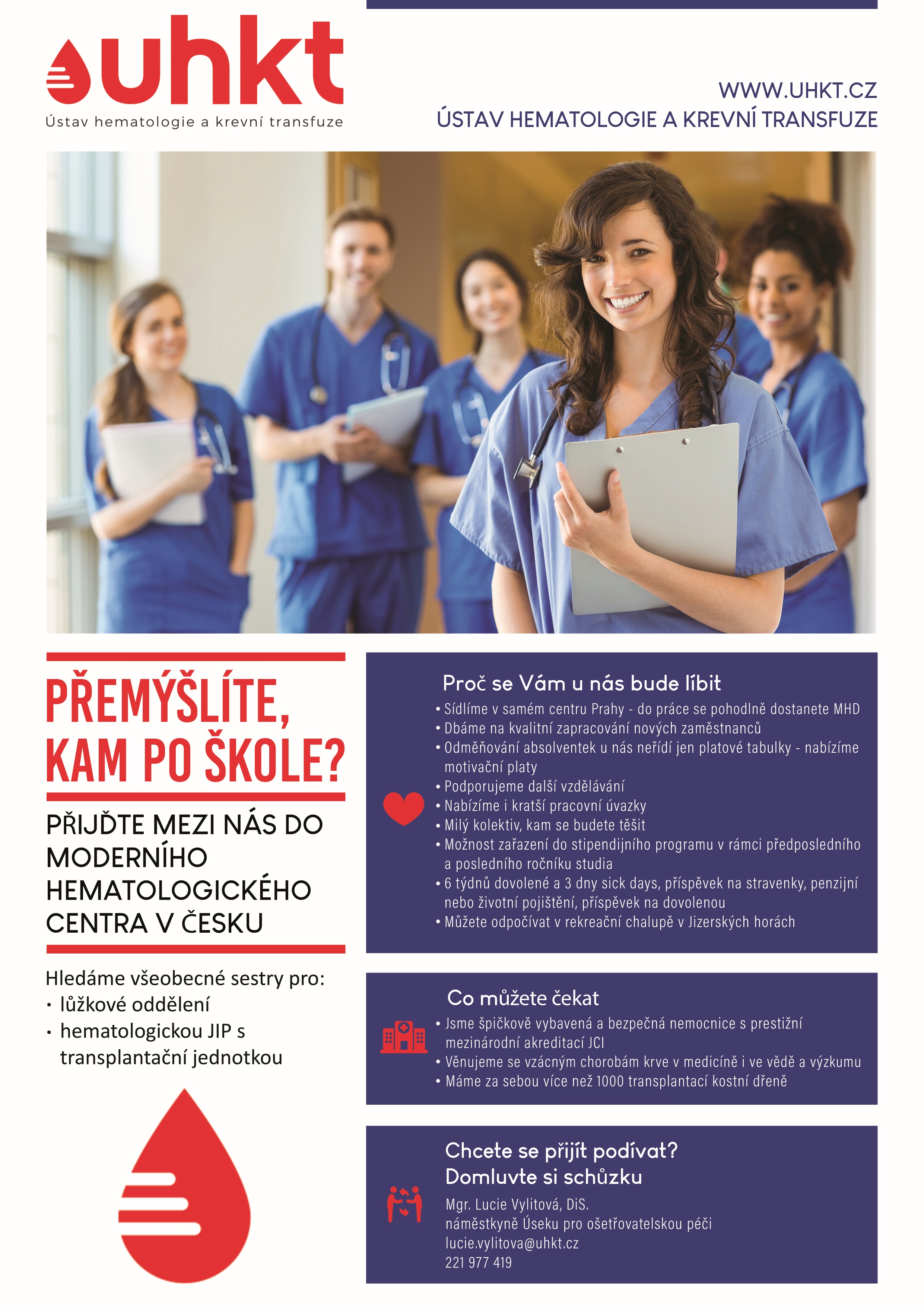 Nacházíte se zde: Úvod > Absolventi > Nabídka pracovních míst > Všechny nabídky - interní > Všeobecné sestry - Ústav hematologie a krevní transfuze - Praha